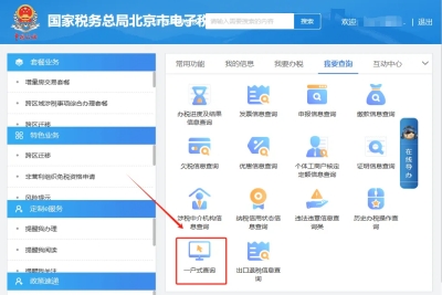 (2)點擊【我要查詢】 — 【一戶式查詢】 — 【稅務登記查詢】 — 【財務會計制度備案查詢】。